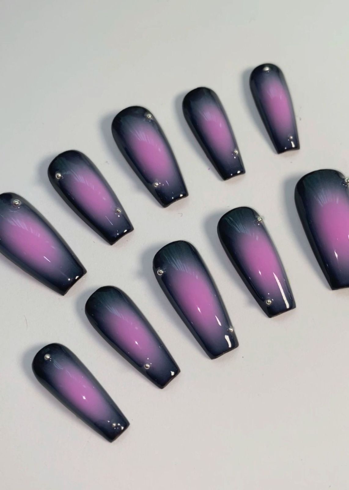 A dreamy blend of galaxy pink and purple, with soft glowing edges and subtle rhinestones for that cosmic charm.